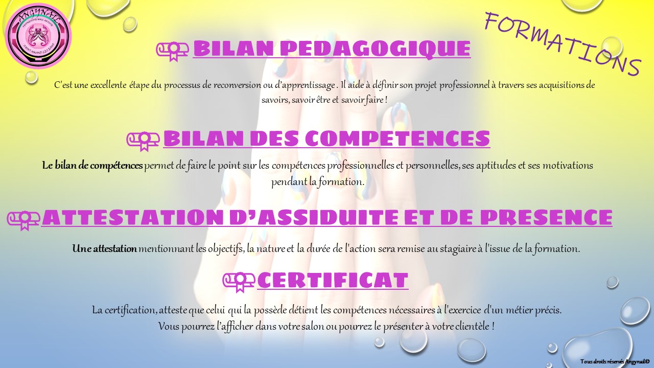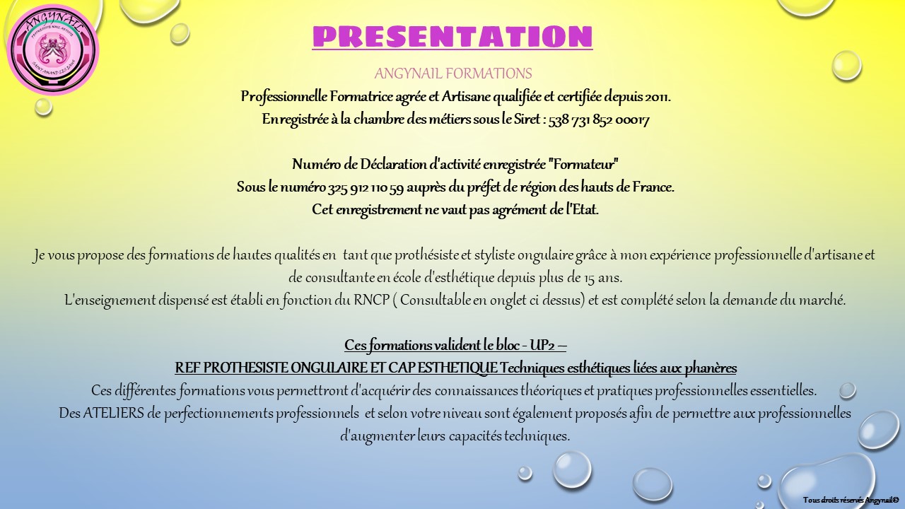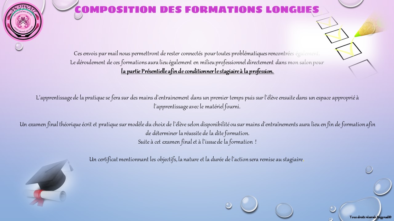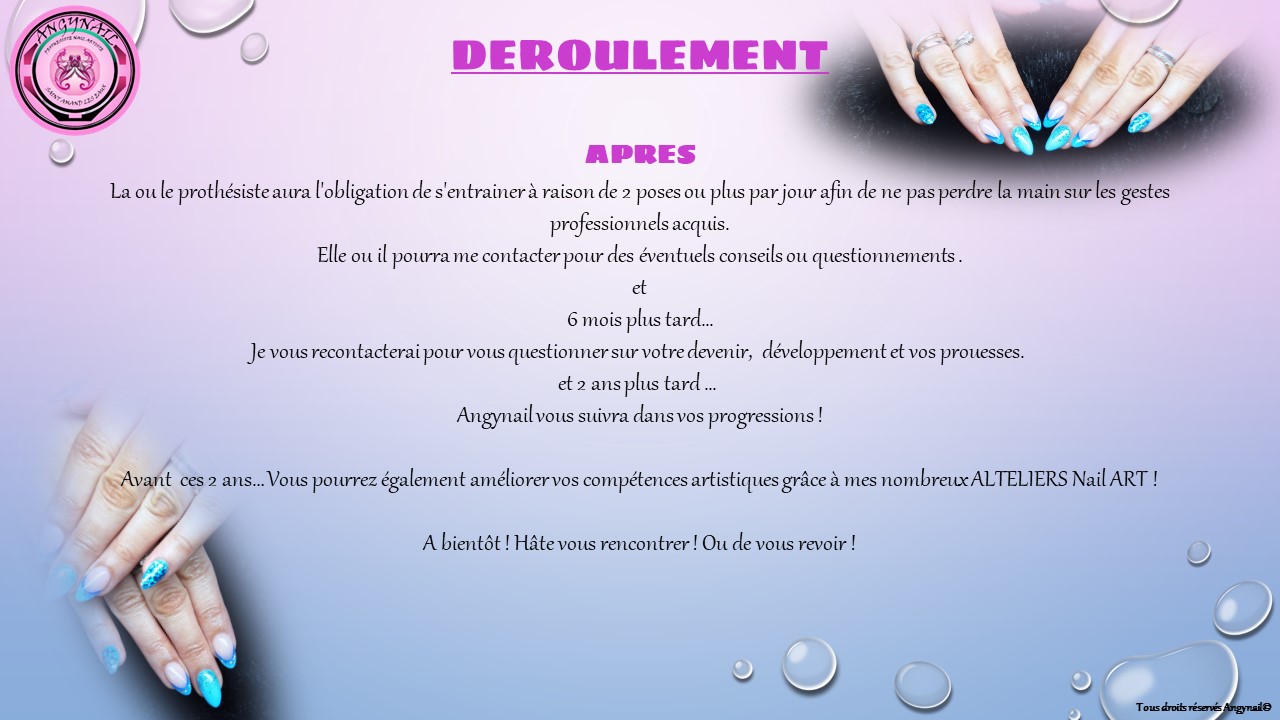 Il ne pourra pas travailler sur les mains de ma clientèle car il est nécessaire d'acquérir un minimum de maîtrise avant.