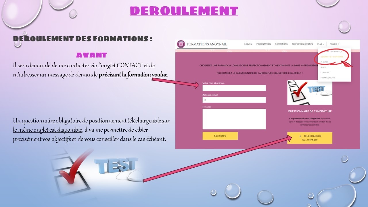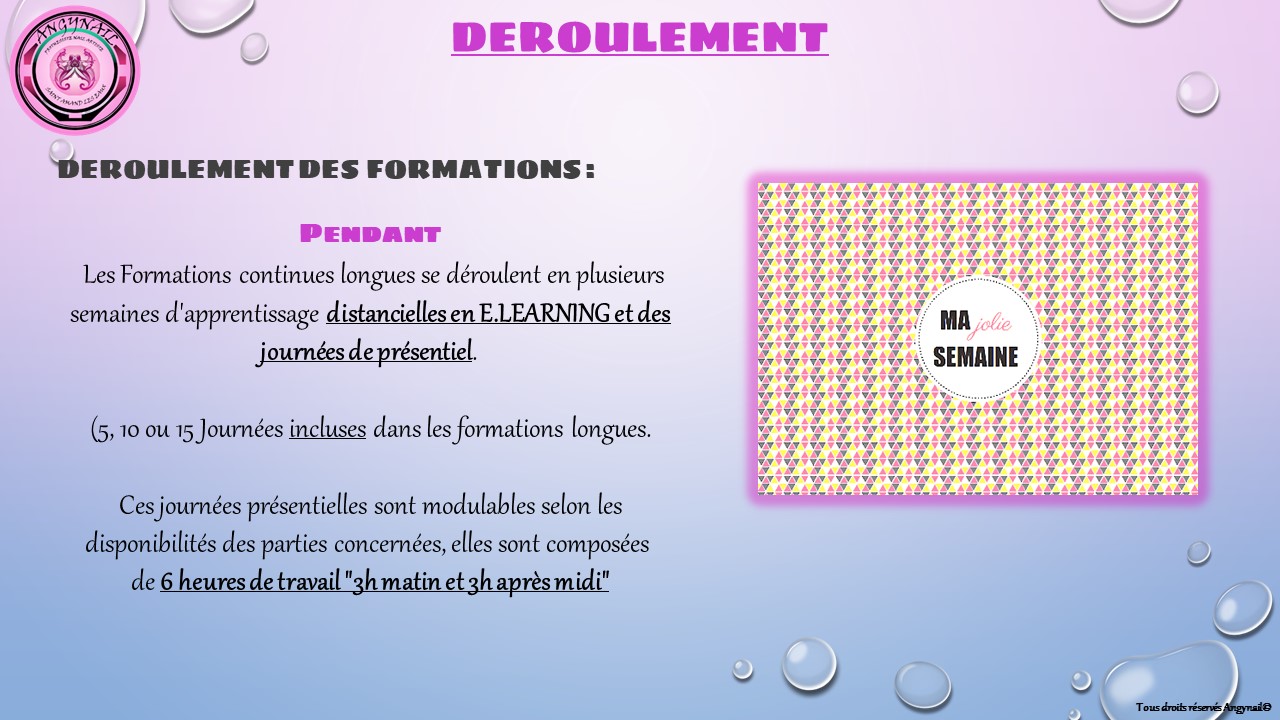 Durant le stage, il se peut que je sois amenée à recevoir des rendez vous de ma propre clientèle en même temps que la pratique présentielle d'entrainements, pendant les formations longue durée.